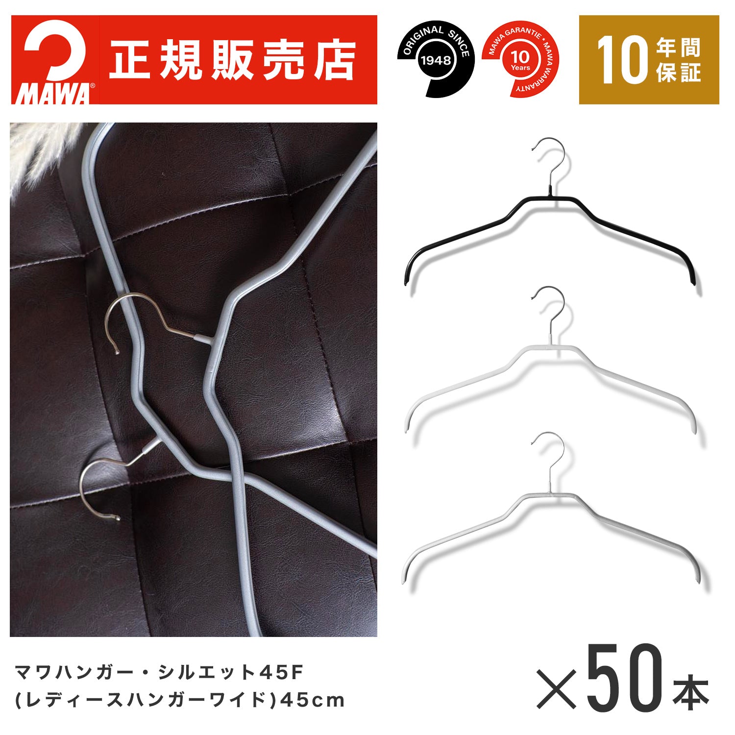 【本店特価!】MAWAハンガー(マワハンガー)【3210】 レディースハンガー50本セット すべらない、マワ(MAWA)社のハンガー 【シルエット41F】すべらないハンガー [幅40cm]【正規品】