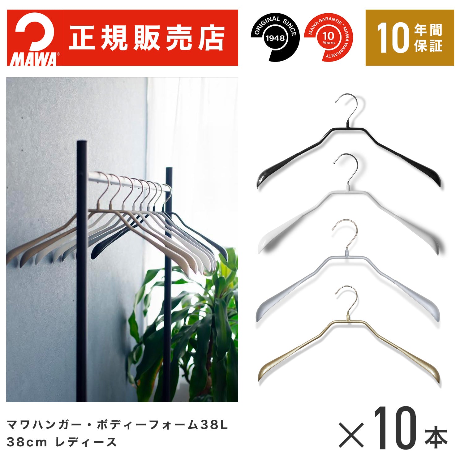 【本店特価!】MAWAハンガー(マワハンガー)【4390】 ボディーフォームミニ 10本セット すべらないハンガー [幅38cm]スーツやコートに適した形です【正規品】