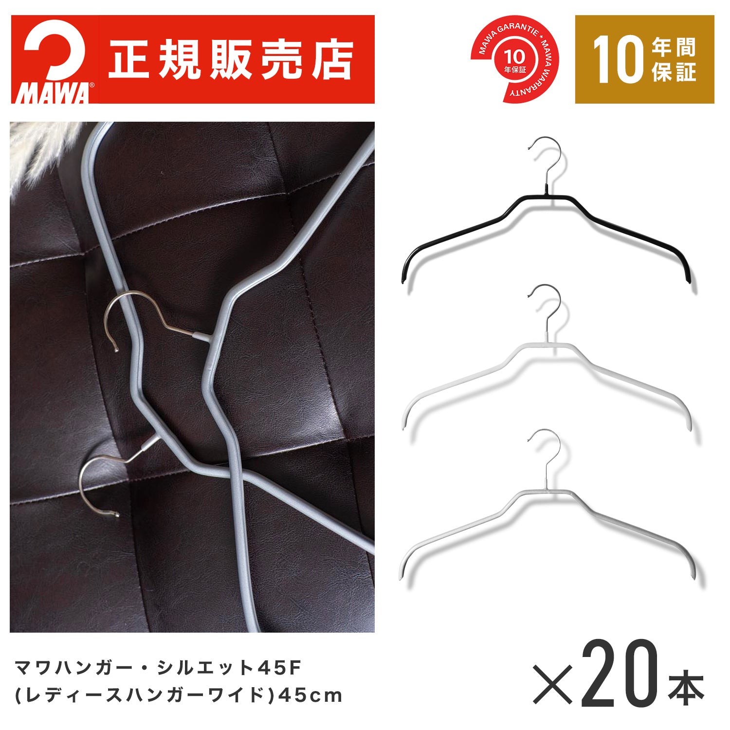 【本店特価!】MAWAハンガー(マワハンガー【3220】 レディースハンガー ワイド(45cm)20本セット すべらない、マワ(MAWA)社のハンガー【シルエット45F】すべらないハンガー ドイツ スリム ノンスリップハンガー [幅 45cm]【正規品】