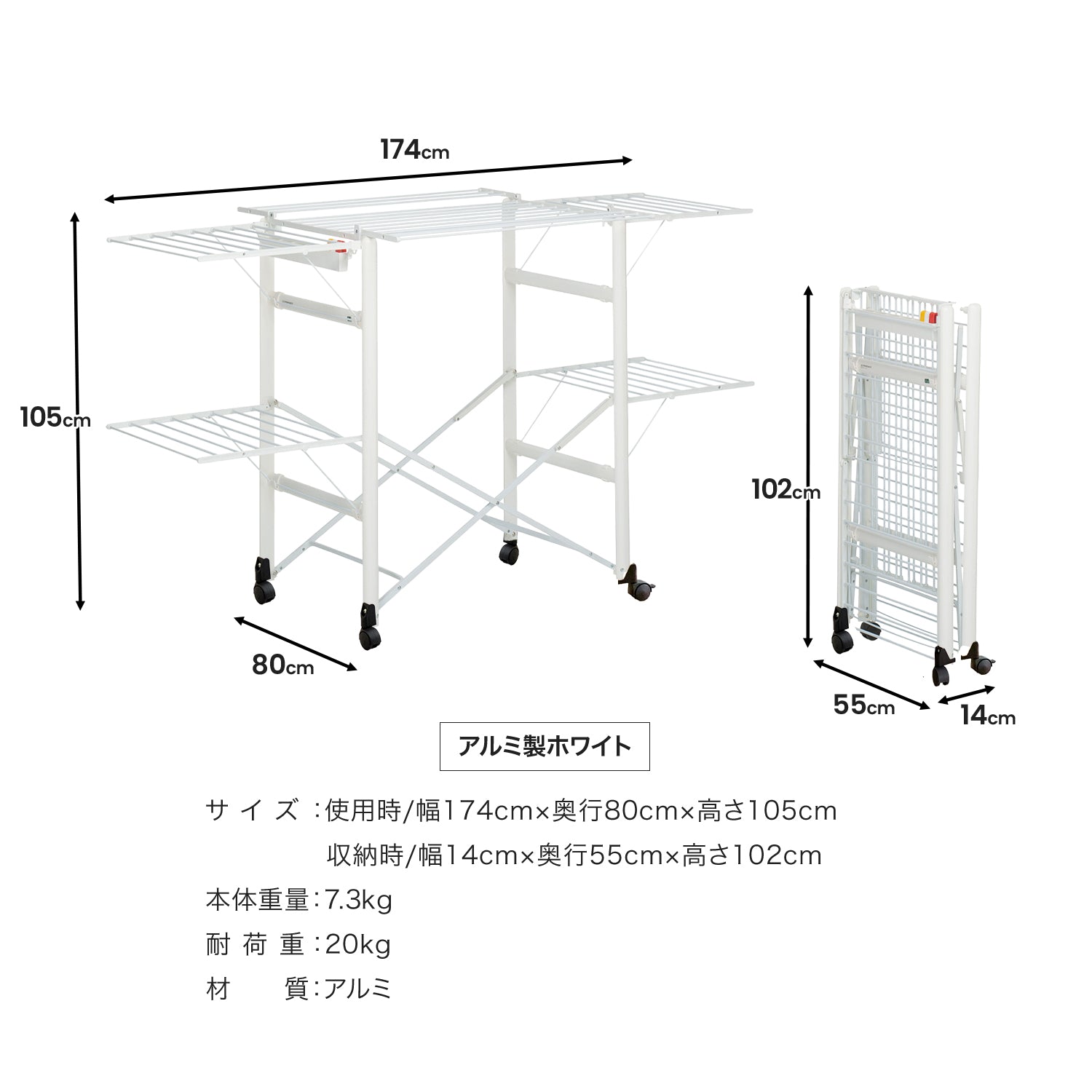 収納時:幅14cm×奥行×55cm高さ×103cm